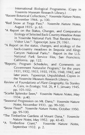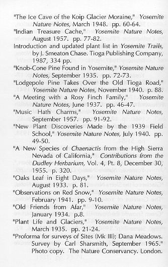 Pages below are from Sharsmith, John and Shields, Allan, 1996, Climb Every Mountain: A Portrait of Carl Sharsmith. Jerseydale Ranch Press: Mariposa, CA. Pages xiv-xxiv. Permission to reproduce this bibliography on the website name4carl.org received from Allan Shields, 4/20/06.
