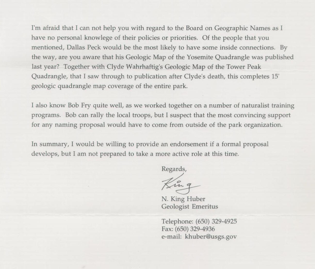 Dr. N. King Huber, Geologist Emeritus with U.S. Geological Survey and author of "Geologic History of Yosemite National Park" and "Yosemite National Park Geological Map". Based in Menlo Park, California.