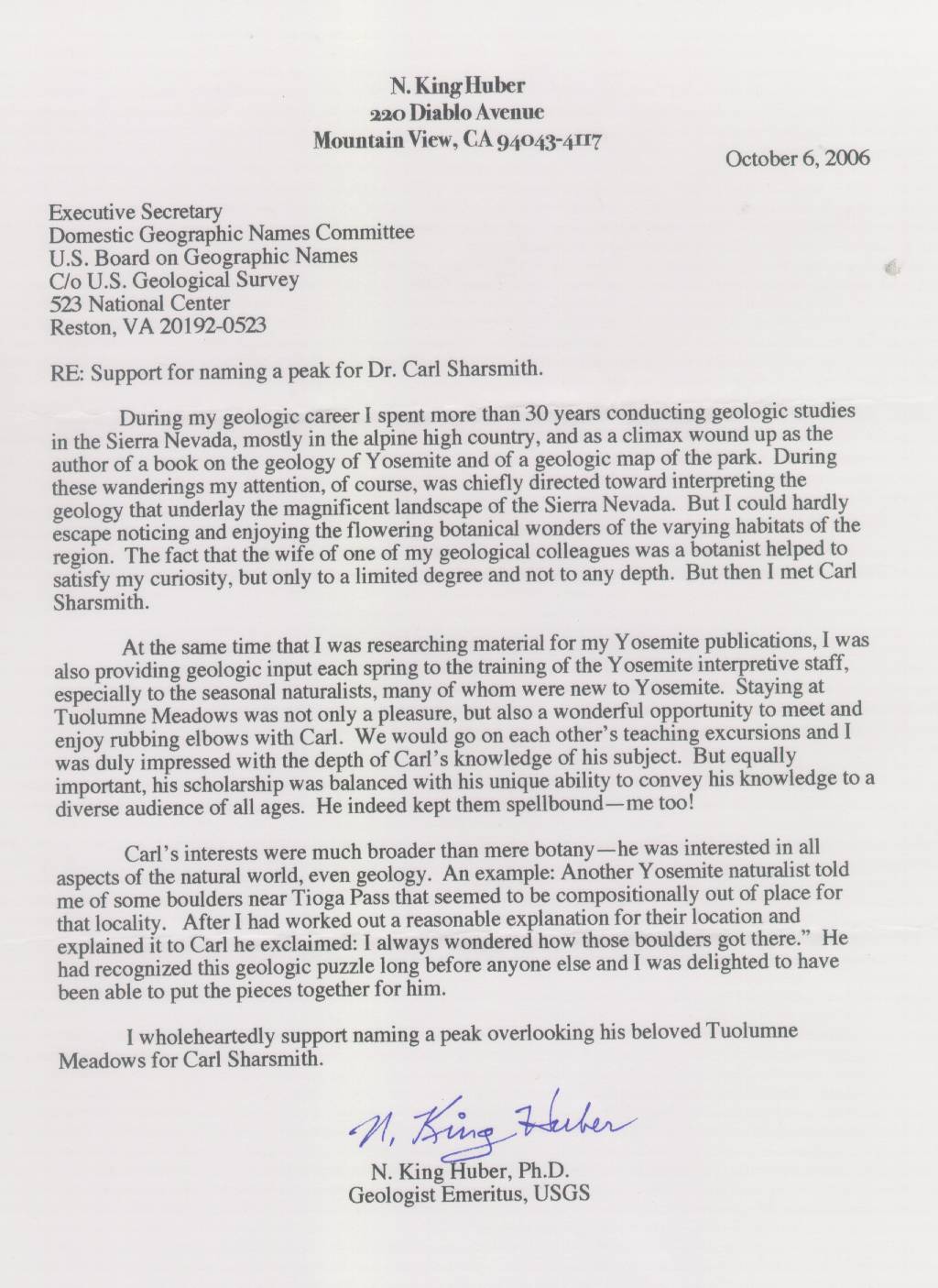 Home & Synopsis/Status Reports Purpose & Method Who was Carl Sharsmith? Why name a Yosemite feature for Carl?/Origin of Proposal Which feature should be named for Carl? How can a feature be named for Carl? SUMMARY OF SUPPORTING STATEMENTS Contacts/Resources Webmaster Search Form