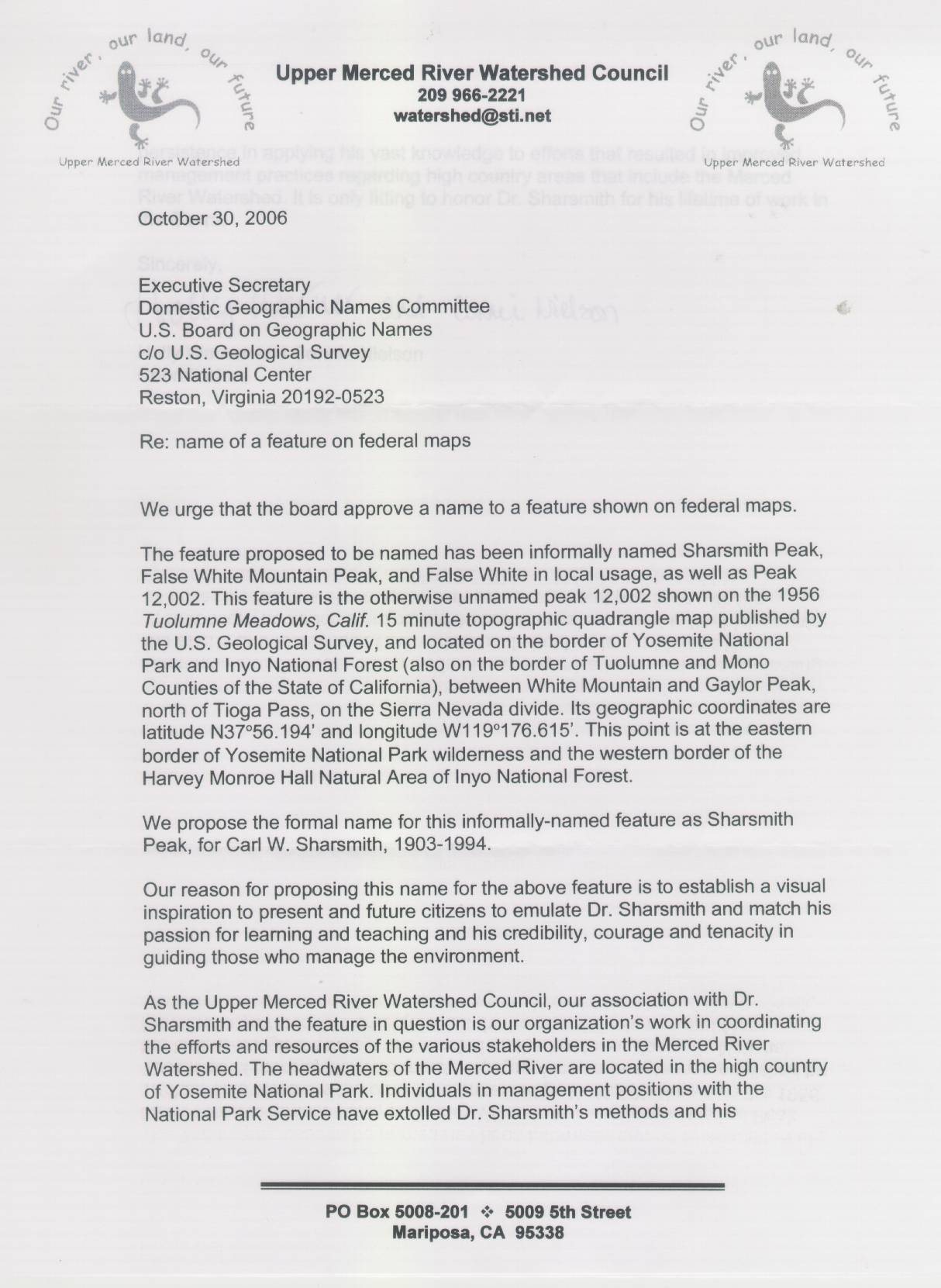 This "Supporting Statement--Upper Merced River Watershed Council" page last modified 11/24/2006: \name4carl\n4ctest39.htm.
