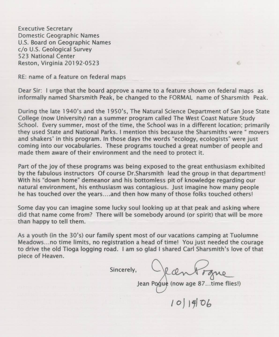 57) SUPPORTING STATEMENT OF JEAN POGUE
