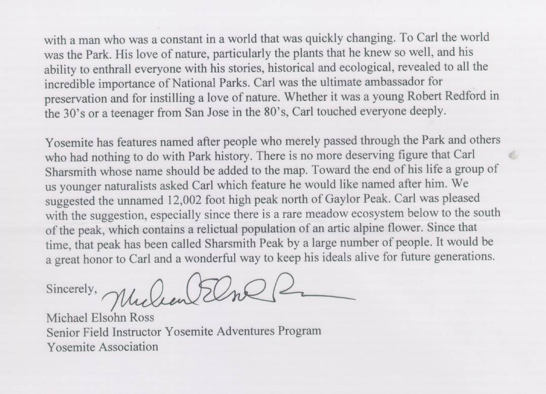 Home & Synopsis/Status Reports Purpose & Method Who was Carl Sharsmith? Why name a Yosemite feature for Carl?/Origin of Proposal Which feature should be named for Carl? How can a feature be named for Carl? SUMMARY OF SUPPORTING STATEMENTS Contacts/Resources Webmaster Search Form