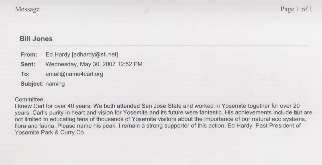 Home & Synopsis/Status Reports Purpose & Method Who was Carl Sharsmith? Why name a Yosemite feature for Carl?/Origin of Proposal Which feature should be named for Carl? How can a feature be named for Carl? SUMMARY OF SUPPORTING STATEMENTS Contacts/Resources Webmaster Search Form