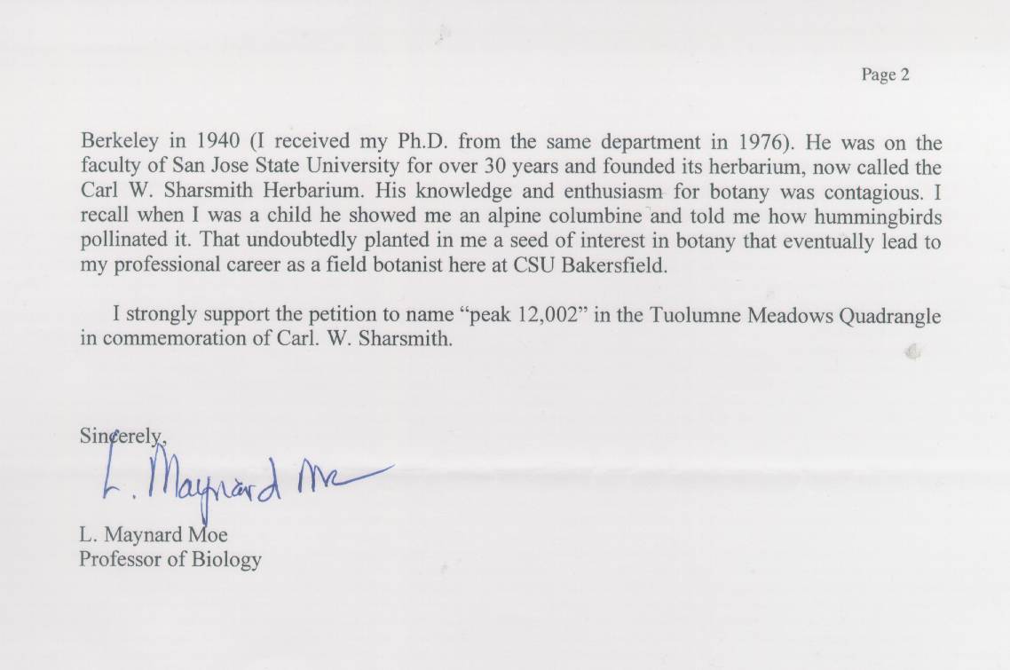 Dr. L. Maynard Moe. Raised in Yosemite Valley, now Professor of Biology, California State University, Bakersfield, California.