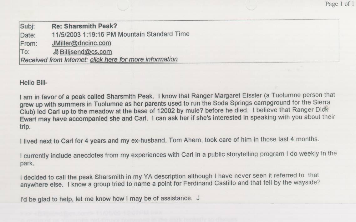 Home & Synopsis/Status Reports Purpose & Method Who was Carl Sharsmith? Why name a Yosemite feature for Carl?/Origin of Proposal Which feature should be named for Carl? How can a feature be named for Carl? SUMMARY OF SUPPORTING STATEMENTS Contacts/Resources Webmaster Search Form